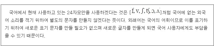 예시) 우리말의 자음 'ㄱ~ㅎ'과 모음'ㅏ~ㅣ'로만 표기한다.