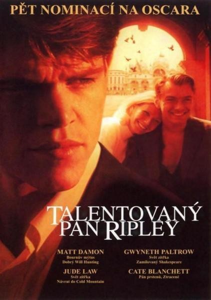 '리플리'는 알랭 들롱의 '태양은 가득히'를 리메이크한 영화다. 주드 로, 기네스 팰트로 그리고 케이트 블란쳇까지. 배우들의 옛 모습을 보는 것만으로도 즐겁다. 또한 맷 데이먼의 어수룩하고 주눅 든 듯한 표정연기가 돋보인다.