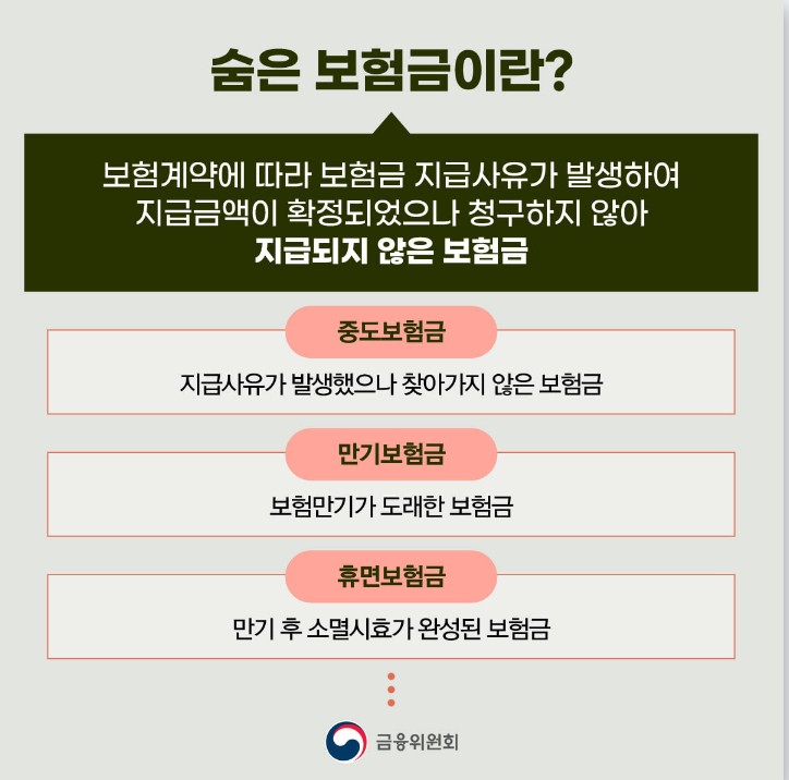 숨은 보험금 : 보험금 지급사유가 발생해서 지급금액이 확정됐지만 청구되지 않은 보험금