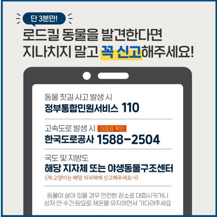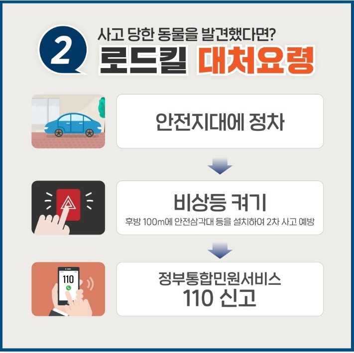 - 동물 찻길 사고 발생 시 정부통합민원서비스 ☎110