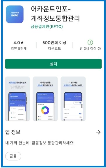 어카운트인포 앱 / 모바일현금카드 앱 설치