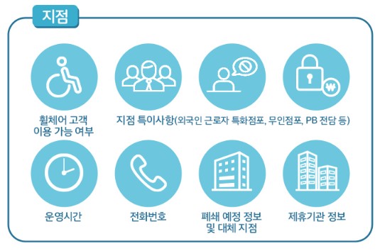 □ 제공 서비스, 영업시간 등 지점·ATM별 정보 제공 (운영시간, 제공 서비스, 휠체어 공간 등 지점 별 특성 정보 제공)