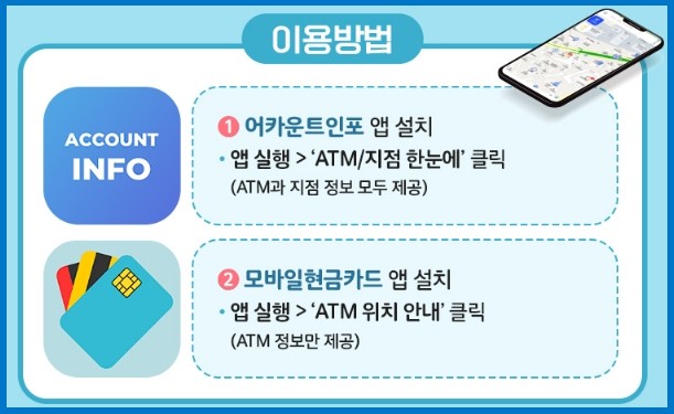 - 앱 실행 〉 'ATM/지점 한눈에' 클릭