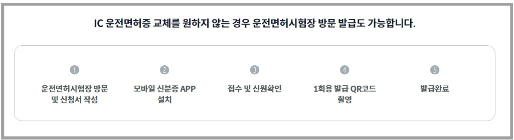 * IC 운전면허증 신청은 안전운전통합민원 홈페이지 또는 운전면허시험장에서 발급받을 수 있다.