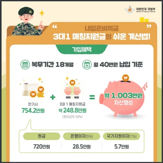 병역의무 이행자가 병역의무 이행기간(복무기간) 중 급여를 적립함으로써 합리적인 저축 습관을 형성할 수 있도록 돕고, 전역(소집해제) 후 목돈마련을 지원하여 사회로 진출하는 첫 발걸음을 성공적으로 내딛을 수 있도록 국방부, 법무부, 병무청, 경찰청, 해양경찰청, 소방청 등 여러 복무기관이 마련한 대표 정책 금융 상품.
