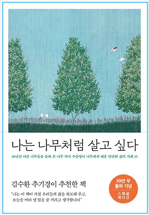제가 어린 시절만 해도 사람들 곁에는 나무가 있었습니다. 그 나무들은 각박했던 우리 삶에 작은 위안을 주었습니다. 생각해 보면 나무는 우리 삶의 작은 쉼터가 아니었나 싶습니다. 힘들고 괴로울 때 머리를 기대어 울기도 하고, 지친 몸을 누이고 숨 돌리던 그런 쉼터 말입니다. 그러나 산과 들이 깎여 나가고 그 위에 도시가 들어서면서 어느 순간 우리는 우리에게 녹색 빛 여유로움을 주던 나무들을 잊어 가며 살고 있습니다. 저는 이 책이 그런 우리들의 삶을 잠시 멈추게 해 줄 휴식처가 될 거라 생각합니다. 우리 주변에 있는 나무와 친구 하면서, 또한 나무가 살아가는 모습을 통해 삶의 지혜를 얻을 수도 있을 것입니다. - 김수환 (前 천주교 서울대교구장 추기경)