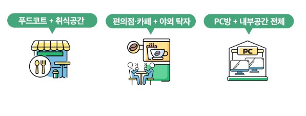 : 편의점 내부 공간 & 바깥의 탁자는 규제 적용 범위 - ③ 카운터 및 주방만 휴게음식점 영업허가를 받았고, 기타 내부 공간(PC 이용 좌석 등)은 아닌 경우