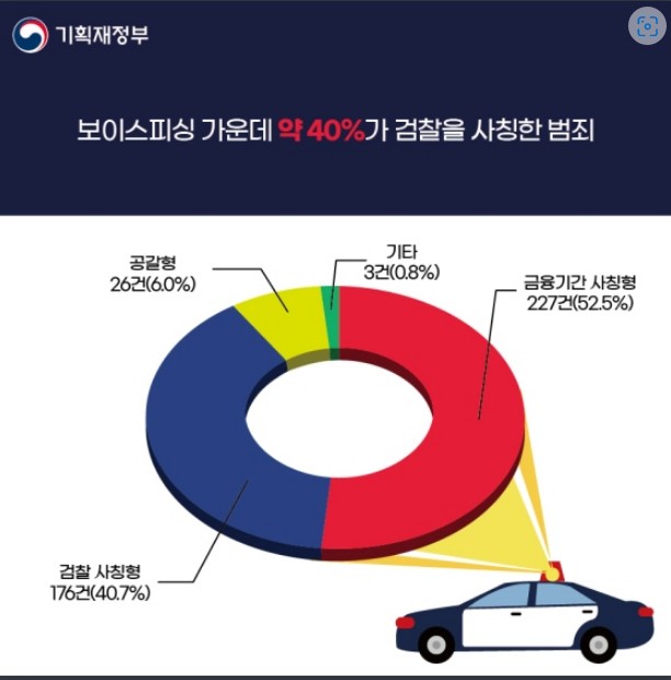 보이스피싱 가운데 약 40%가 검찰을 사칭한 범죄