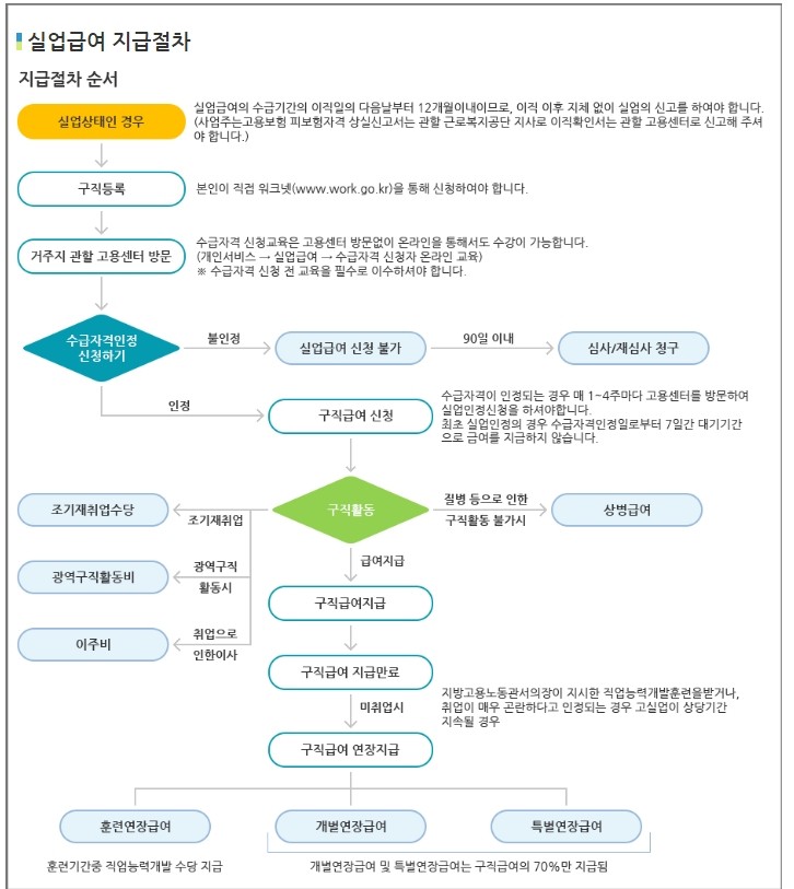 ※ 구직급여는 퇴직한 다음날부터 12개월이 경과하면 지급받을 소정급여 일수가 남아있더라도 더 이상 지급받을 수 없다.