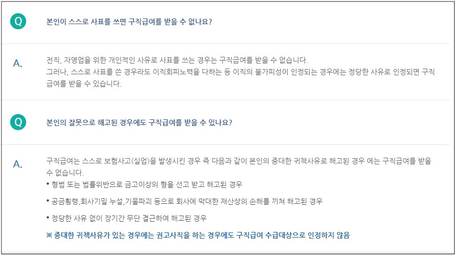 4. 이직사유가 비자발적인 사유일 것 (이직 사유가 법 제 58조에 따른 수급자격의 제한사유에 해당하지 아니할 것)