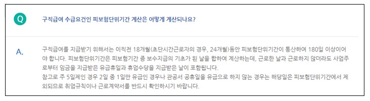 180일은 실제 근무일수와 유급휴일 합한 기간임. 무급휴일 제외. 기간 내 실업급여 수급 내역이 없어야 함.