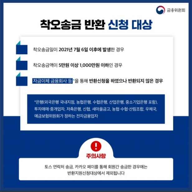 - 착오송금 일이 2021년 7월 6일 이후에 발생한 경우