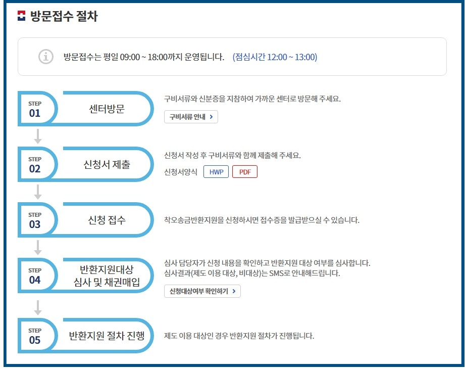 - 방문 신청 : 예금보험공사 본사 1층 상담 센터 (서울시 중구)