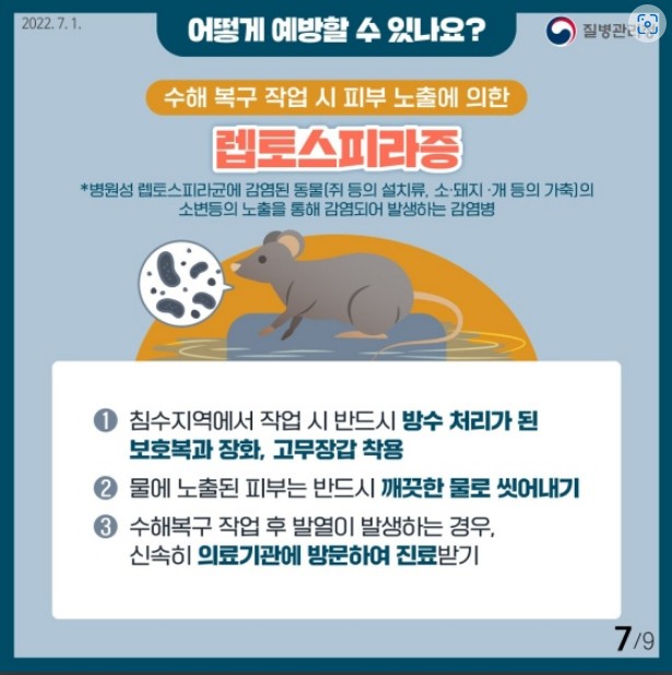 수해 복구 작업 시 피부 노출에 의한 ‘렙토스피라증’