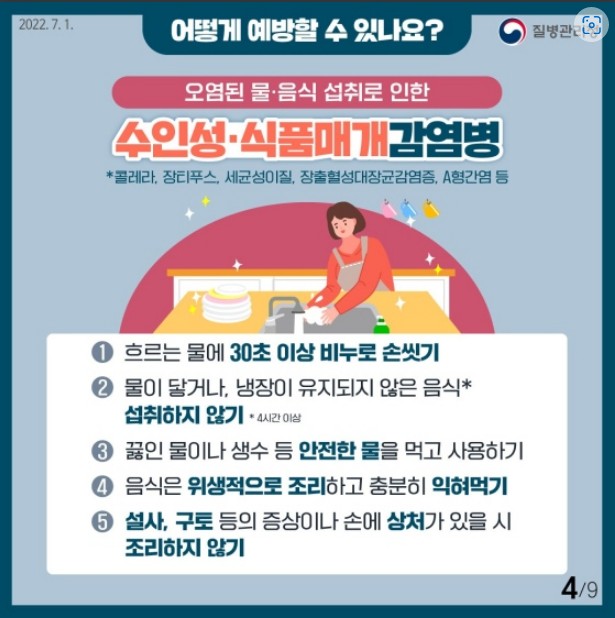 오염된 물 음식 섭취로 인한 ‘수인성·식품 매개 감염병’