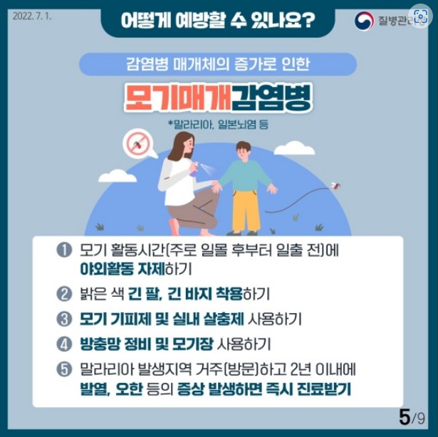 모기매개 감염병은 말라리아, 일본뇌염 등이 있다.