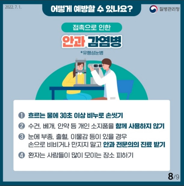 - ③ 눈에 부종, 출혈, 이물감 등이 있을 경우, 손으로 비비거나 만지지 말고 안과 전문의의 진료받기