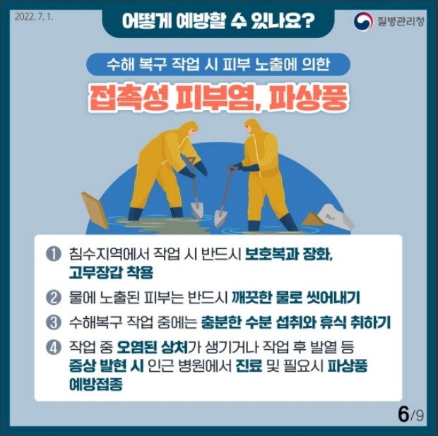 수해 복구 작업 시 피부 노출에 의한 ‘접촉성 피부염, 파상풍’