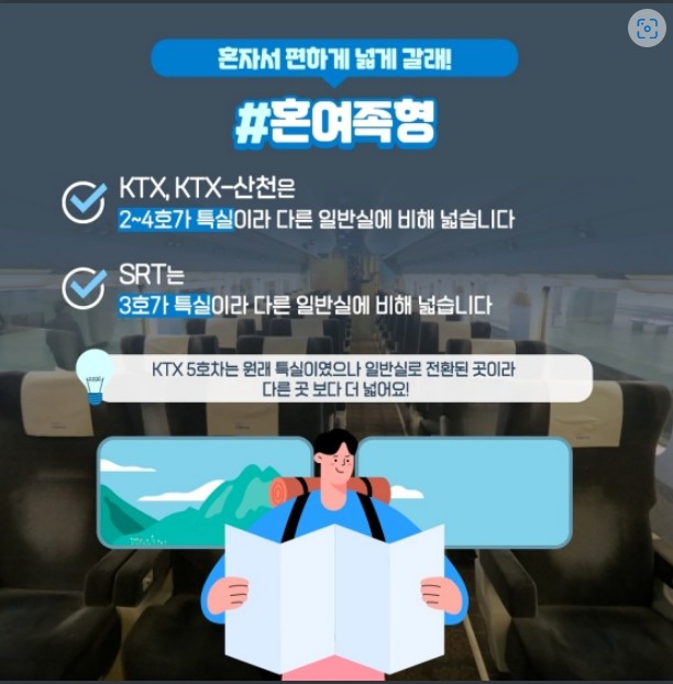 - KTX, KTX-산천은 2~4호가 특실이라 다른 일반실에 비해 넓습니다.