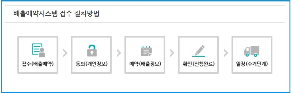이후 예약일에 맞추어 폐기물에 '수거 예정일'(00월 00일 가전 무상수거 예정 등)을 부착하여 지정된 장소에 배출하면 된다.