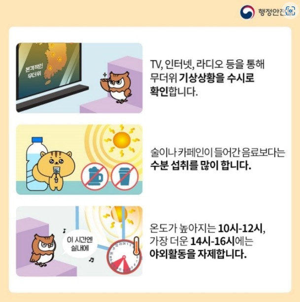 - ① TV, 인터넷, 라디오 등을 통해 무더위 기상상황을 수시로 확인한다.