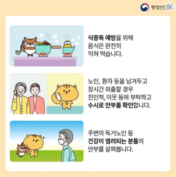 - ⑥ 주변의 독거노인 등 건강이 염려되는 분들의 안부를 살펴본다.