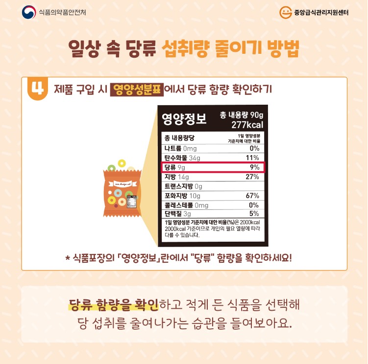 4. 제품 구입 시 영양성분표에서 당류 함량 확인하기