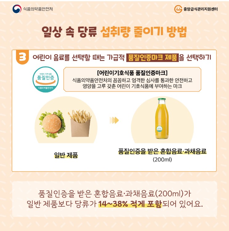 3. 어린이 음료를 선택할 때는 가급적 품질인증마크 제품을 선택하기