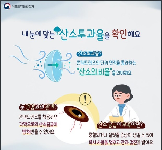 - 산소투과율이 낮은 제품은 장기간 착용 시 충혈·각막부종이 생길 수 있다.