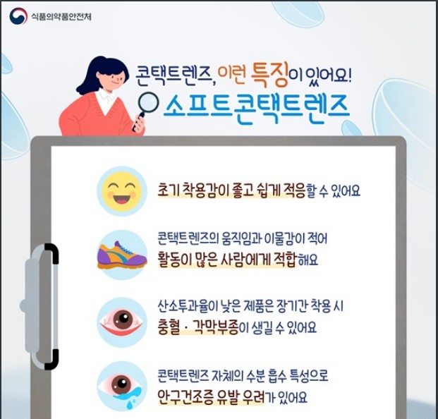 - 콘택트렌즈 자체의 수분 흡수 특성으로 안구건조증 유발 우려가 있다.