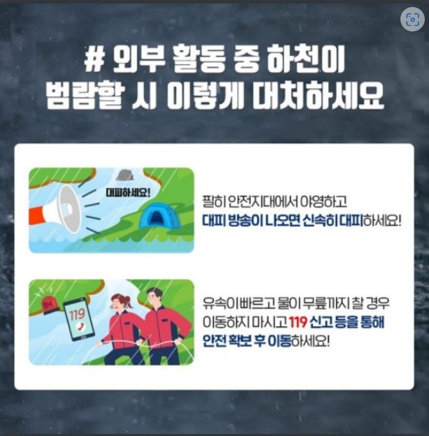 필히 안전지대에서 야영하고 대피방송이 나오면 신속히 대피하세요!