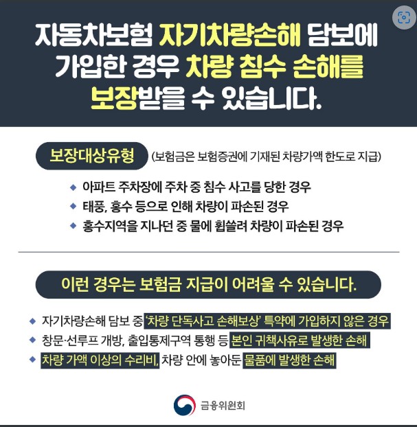 자동차보험 「자기차량손해 담보」에 가입한 경우 차량 침수 손해 보장 가능!