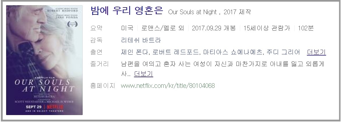 지나가는 사람들을 잡고 이야기를 들어보면 그 사연이 다들 못 해도 책 한 권씩은 나올 것이다. 사연 없는 삶이 어디 있겠는가. 더욱이 나이 든 만큼 차곡차곡 쌓인 삶의 기억들은 긴긴밤을 나누고 나누어도 끝이 없을 것이다. 그렇게 애디와 루이스는 서로의 이야기를 나누고, 서로의 상처를 치유해 주며 함께 밤을 보낸다. 이제 이야기를 나누는 밤이 기다려지고, 삶의 가장 큰 의미로 서로가 자리매김된다. 그런데 자신이 갈등하고 힘겹게 살아온 만큼 의도하지 않았지만 본인들로 인해 상처 받고 힘들어했던 관계가 있기 마련이다. 그래서 그 묶인 인연의 매듭을 잘 풀어내는 것 또한 내게 맡겨진 몫일 것이다. 천주교에서 고해성사를 볼 때 내 죄를 고백한 다음 "이 밖에 알아내지 못한 죄도 모두 용서하여 주십시오."라고 말을 한다. 이 부분은 내가 미처 깨닫지 못한 죄, 나로 인해 상처 받은 사람들을 위로해 달라는 내용이라고 신부님께서 설명해 주셨던 것이 떠오른다. 그렇게 우리는 관계에서 상처 받고 또 상처를 준다. 나를 돌아보고 성찰해야 할 또 하나의 이유이다.