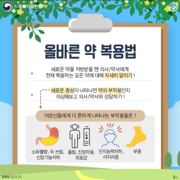 2. 새로운 증상이 나타나면 약의 부작용인지 의심해 보고 의사/약사와 상담하기!