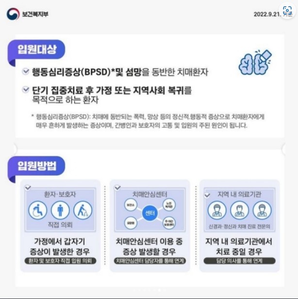 - 일반 환자와 구분된 치매환자 전용 병동 설치