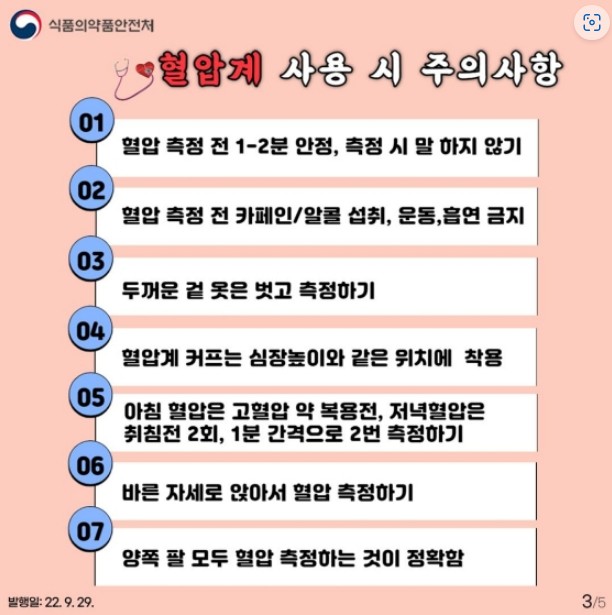 | 혈압계 사용 시 주의사항 |