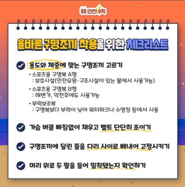 □ 올바른 구명조끼 착용을 위한 체크리스트 □