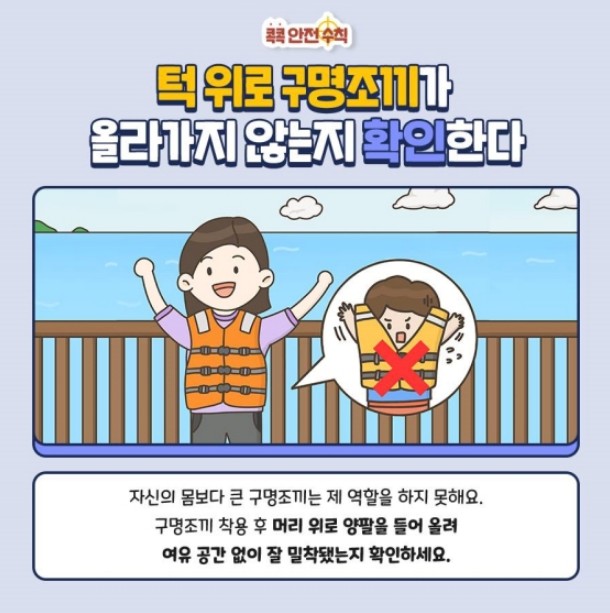 구명조끼 착용 전 반드시 구명조끼 성능과 사이즈를 확인!