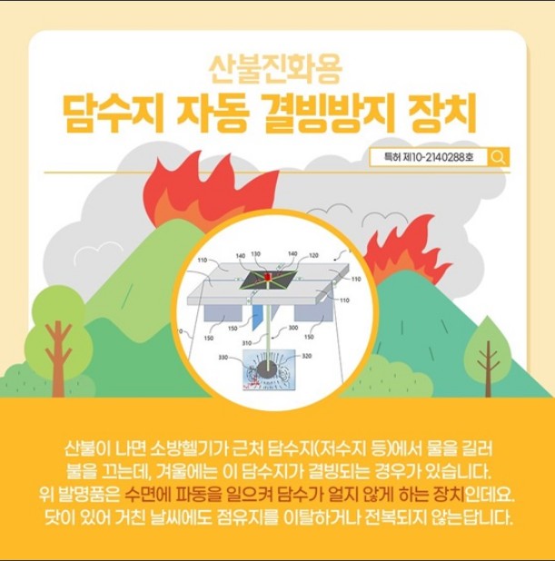 산불이 나면 소방헬기가 근처 담수지(저수지 등)에서 물을 길어 불을 끄는데, 겨울에는 이 담수지가 결빙되는 경우가 있다. 위 발명품은 수면에 파동을 일으켜 담수가 얼지 않게 하는 장치이다. 닷이 있어 거친 날씨에도 점유지를 이탈하거나 전복되지 않는다.