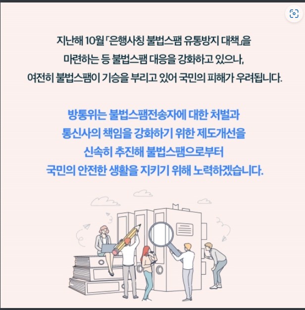 지난해 10월 「은행사칭 불법스팸 유통방지 대책」을 마련하는 등 불법 스팸 대응을 강화하고 있으나,