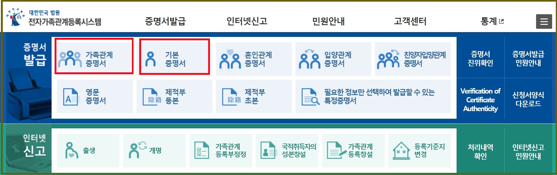 ■ 가족관계 증명서 / 기본증명서 발급 (인터넷) https://efamily.scourt.go.kr/