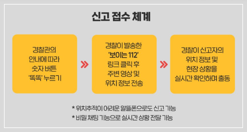 말로 신고하기 어려운 상황에서 ‘112번’에 전화 후 경찰관의 안내에 따라 가볍게 숫자 버튼을 ‘똑똑’ 누르면 신고가 접수되는 시스템
