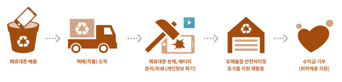 ▷ 폐휴대폰의 자원 재활용으로 발생한 수익금 전액은 도움이 필요한 이웃 돕기에 사용된다.
