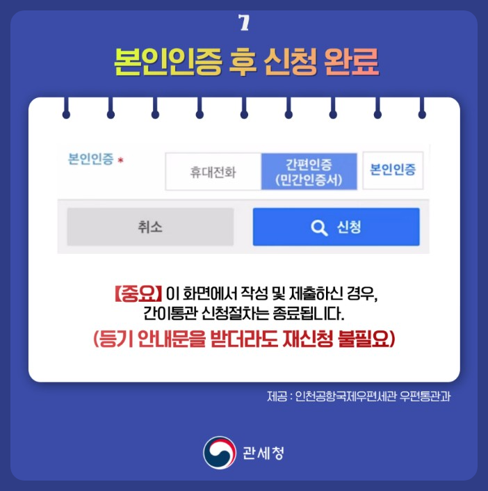 [중요] 이 화면에서 작성 및 제출한 경우, 간이통관 신청절차는 종료된다.