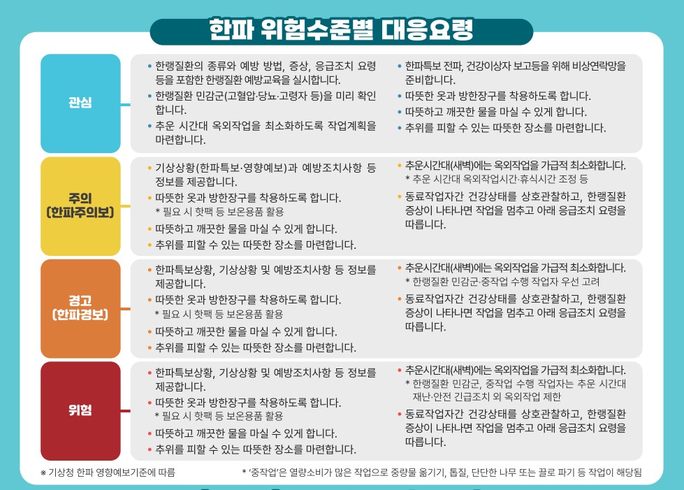 한파 위험수준별 대응요령