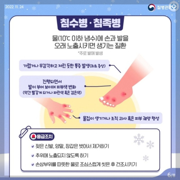 물(10℃ 이하 냉수)에 손과 발을 오래 노출시키면 생기는 질환