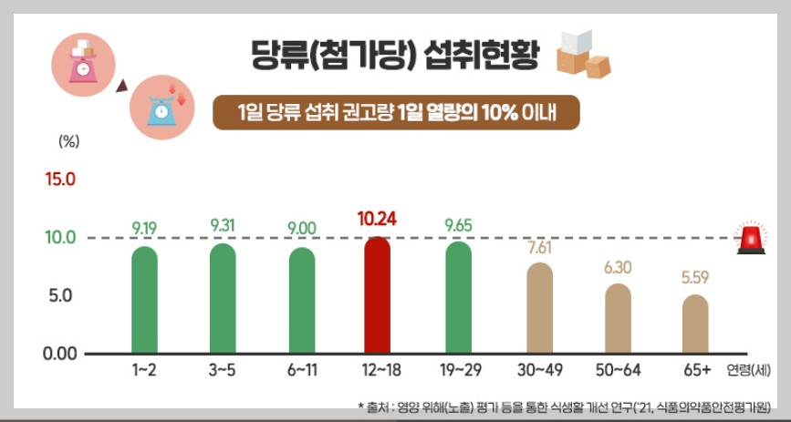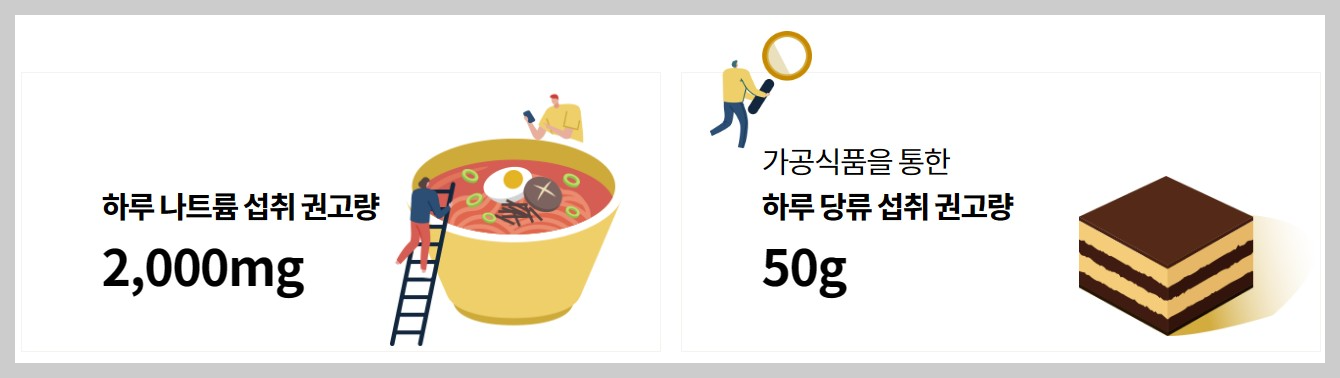 나트륨2,000㎎, 가공식품을 통한 하루 당류 섭취 권고량 50g