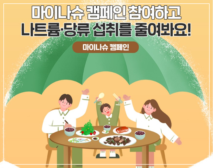 마이너스(-)와 나트륨, 슈가를 합친 단어로 나트륨과 당을 줄인다는 의미의 캠페인!