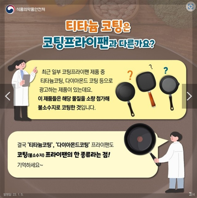 결국 ‘티타늄코팅’, ‘다이아몬드코팅’ 프라이팬도 코팅(불소수지) 프라이팬의 한 종류다.