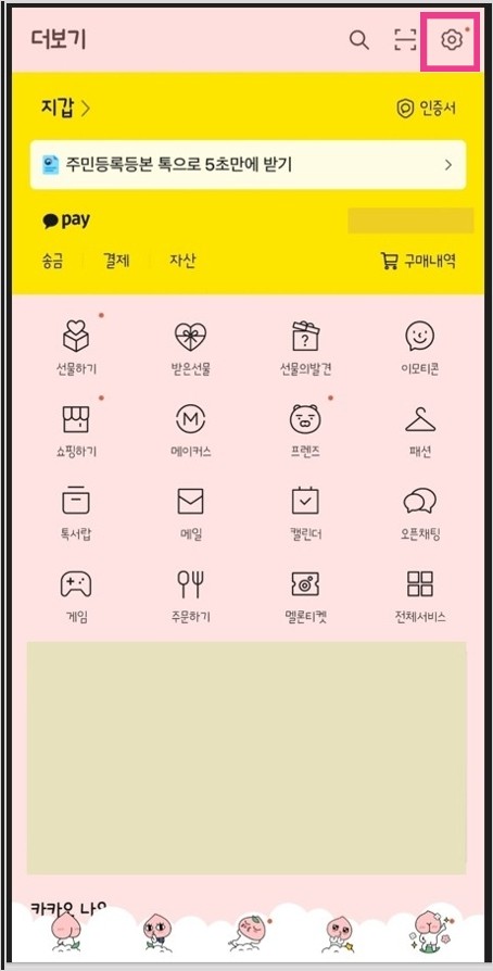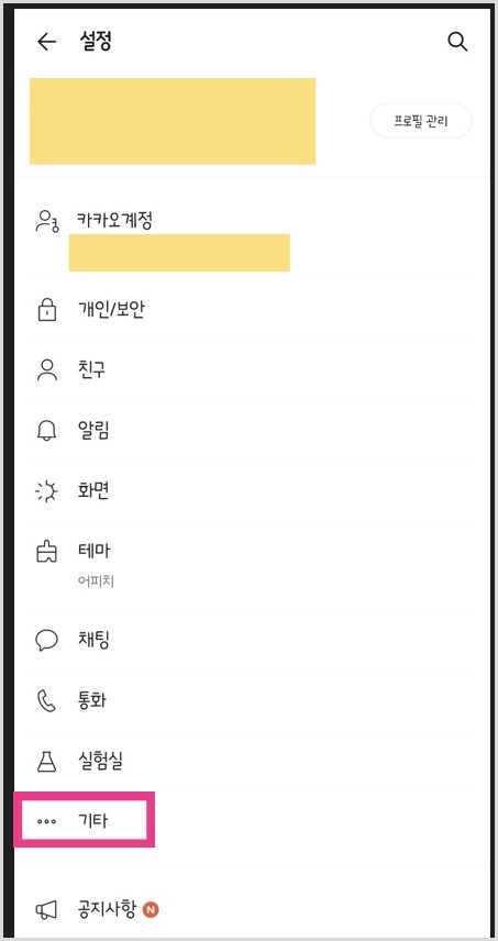 톱니바퀴 (설정)에서 점 세 개 "● ● ●" 기타로 들어가세요.